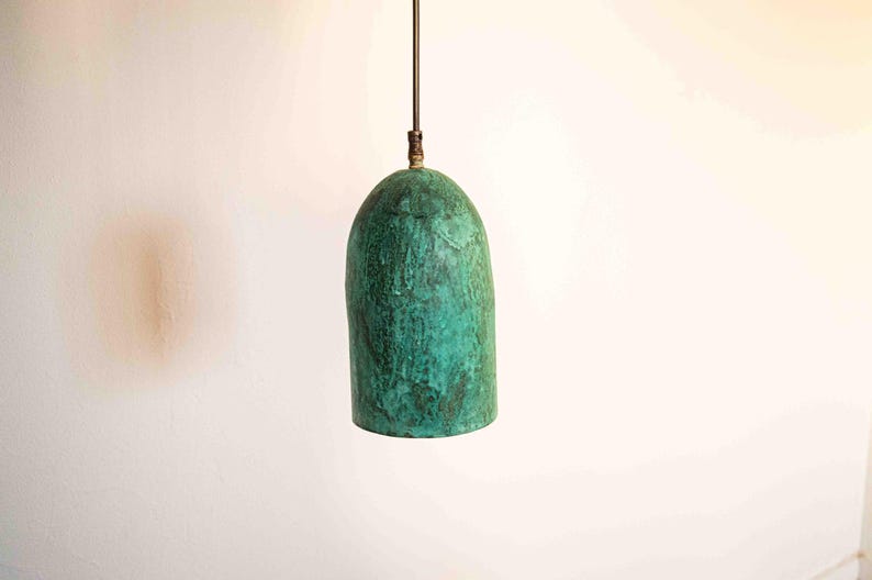 Oxidized Copper Dome Pendant Light: Rustic Green Patina Farmhouse Lighting