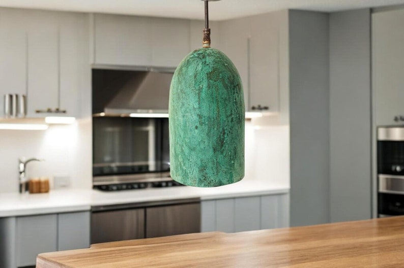 Enhance your home with our Oxidized Copper Farmhouse Pendant Lights, featuring a vintage green patina that adds rustic charm to any space. Ideal for kitchens and dining areas, these dome-shaped ceiling lights provide both style and functionality.