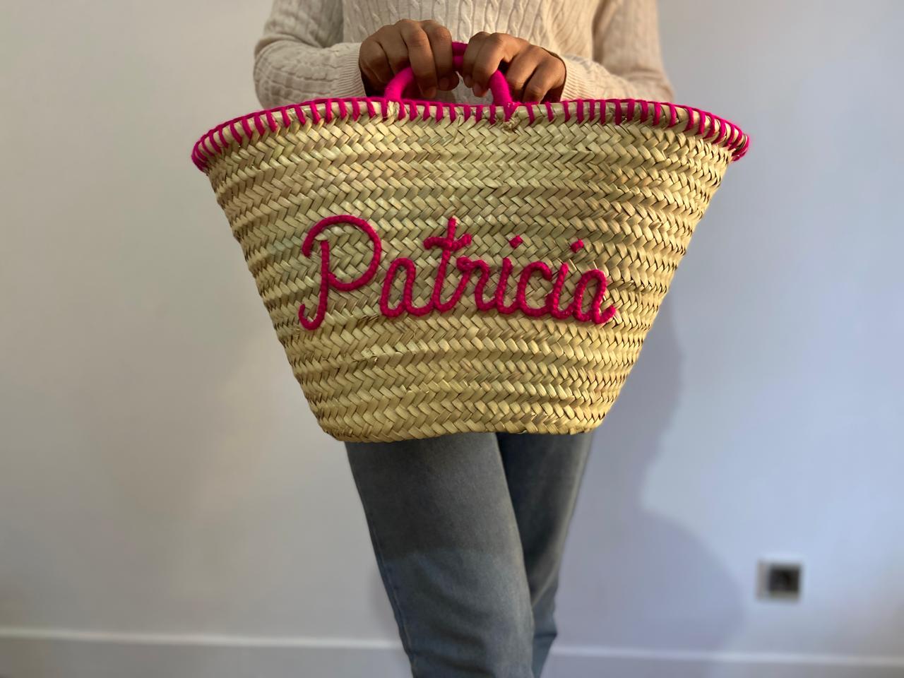 π Personalized Moroccan Straw Bag with Pink Embroidery