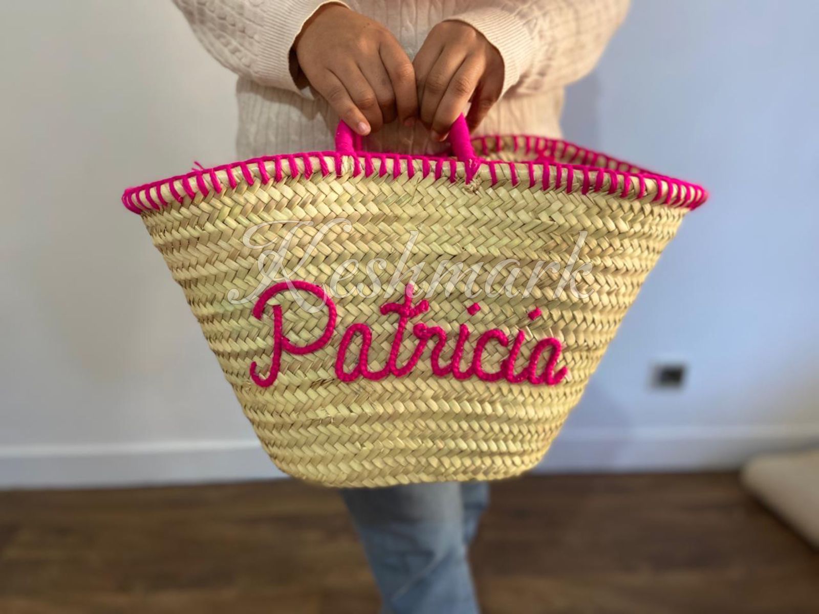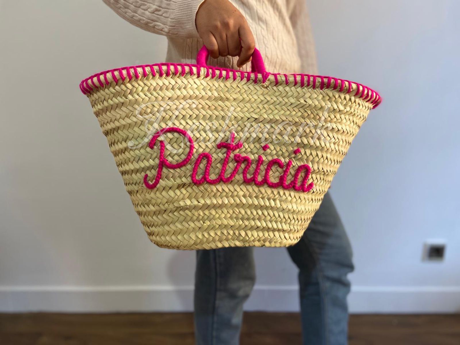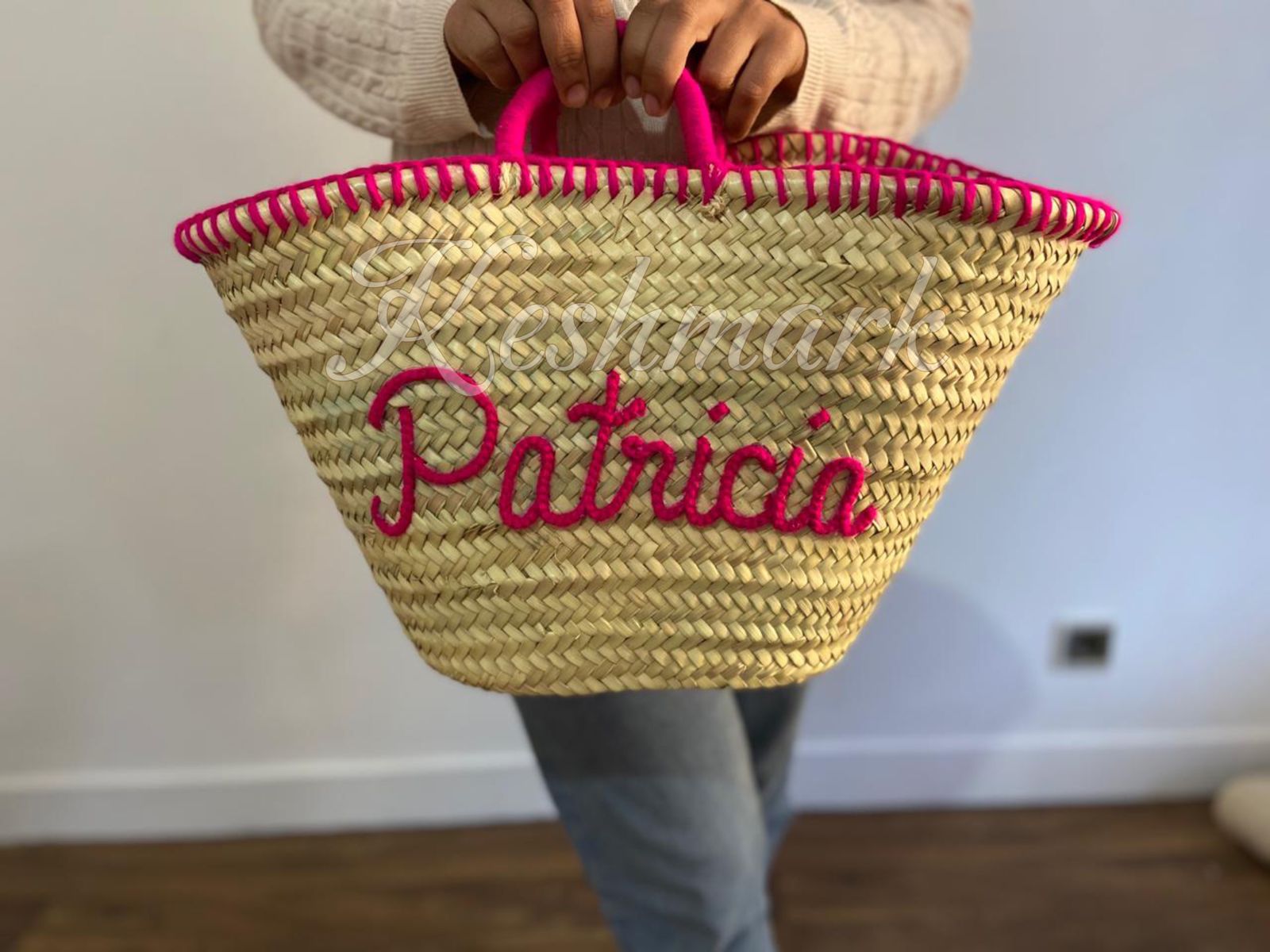 Each basket is handcrafted in the souks of Marrakech by skilled artisans, ensuring every piece is unique. The custom hand-embroidered name on the front makes it the perfect personalized gift β ideal for birthdays, bridesmaids, beach trips, or daily use.