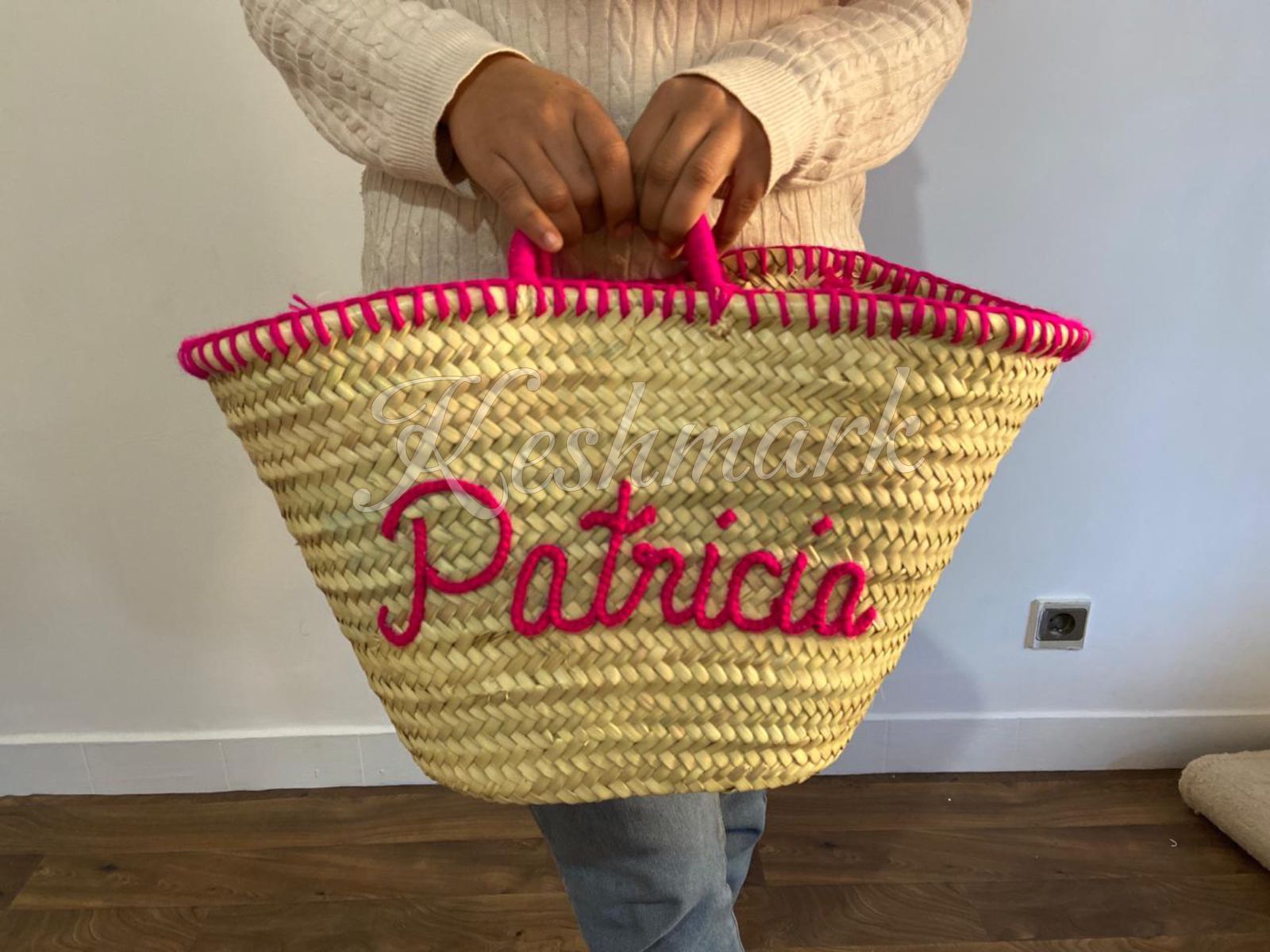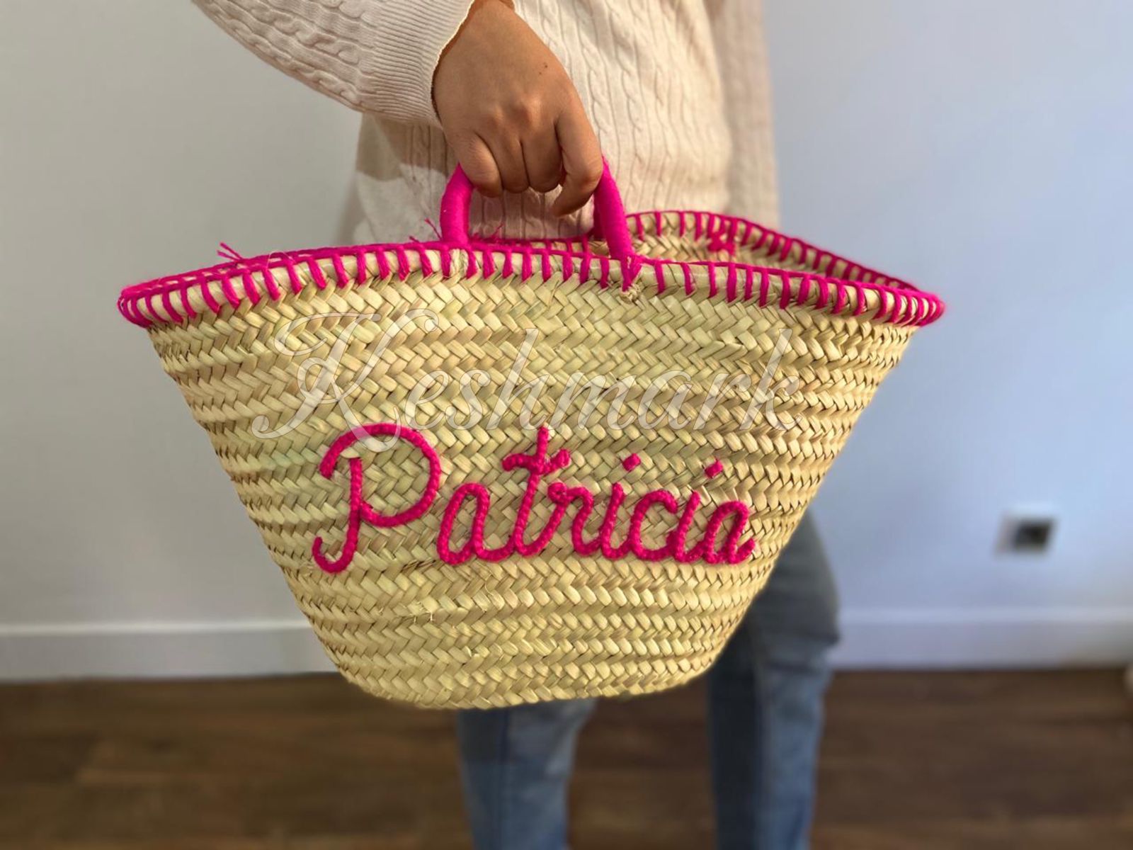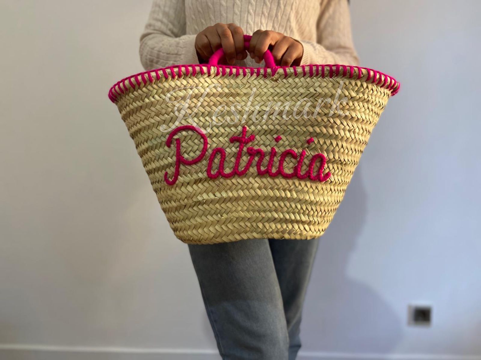 Each basket is handcrafted in the souks of Marrakech by skilled artisans, ensuring every piece is unique. The custom hand-embroidered name on the front makes it the perfect personalized gift β ideal for birthdays, bridesmaids, beach trips, or daily use.