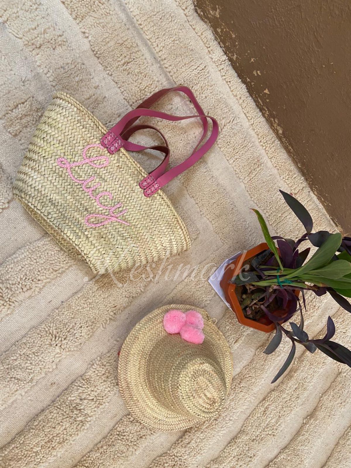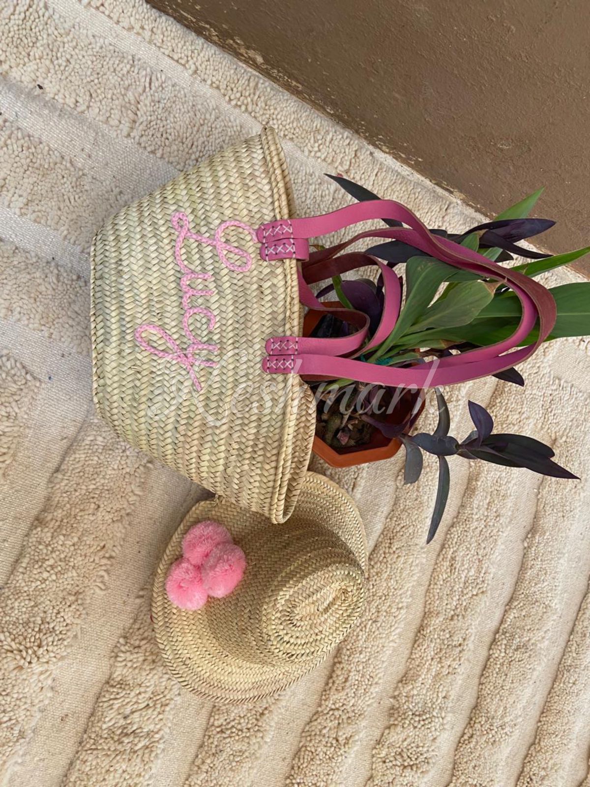 π Personalized Moroccan Straw Bag with PINK Leather Handles