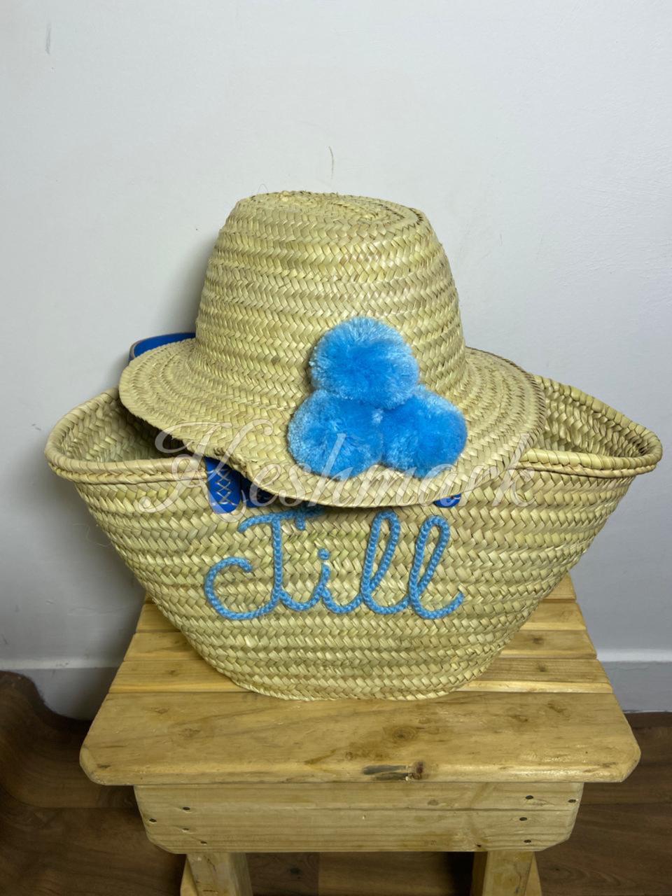 Personalized Straw Bag and Hat Set β Handmade Moroccan Basket with Custom Name Embroidery β Matching Beach Tote & Hat Gift Set
