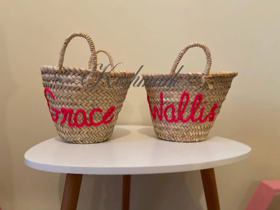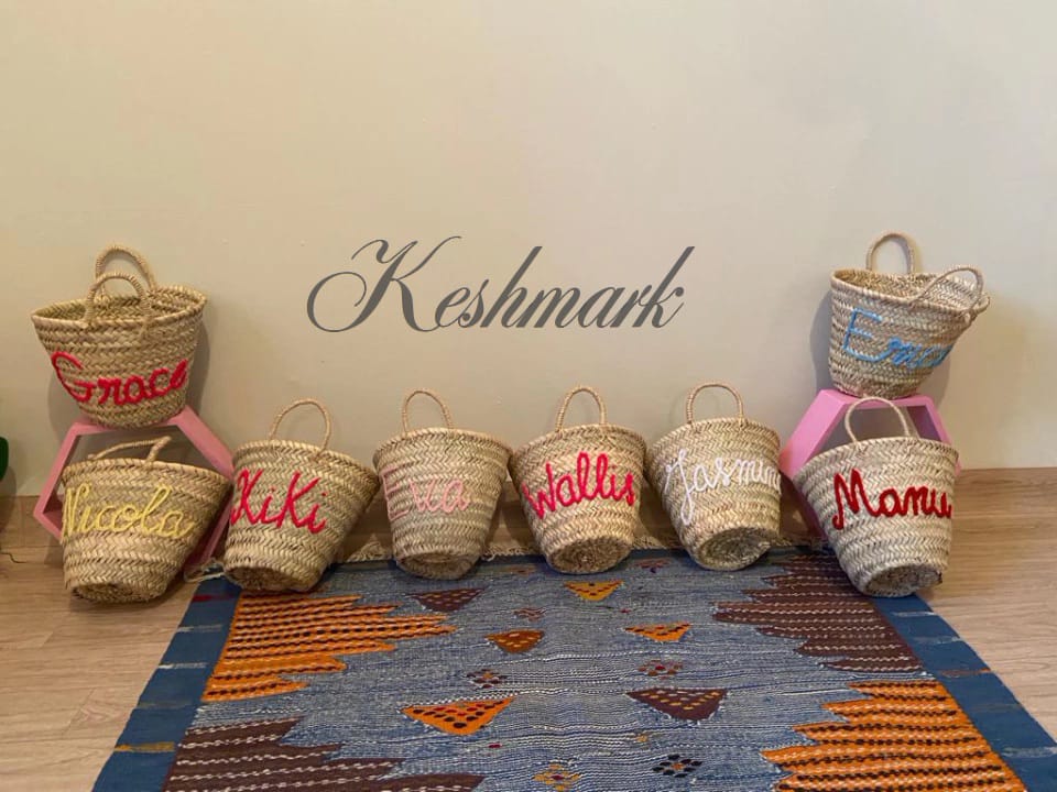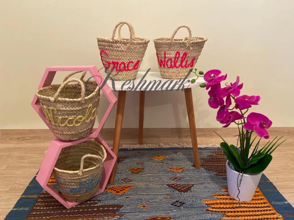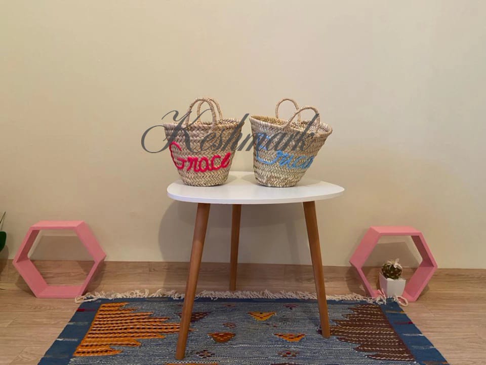 Personalized Straw Basket with Name – Handwoven Moroccan Tote by KESHMARK