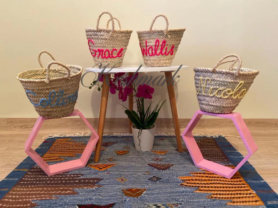 Celebrate individuality with our handwoven personalized straw baskets — a perfect blend of Moroccan craftsmanship and modern charm.