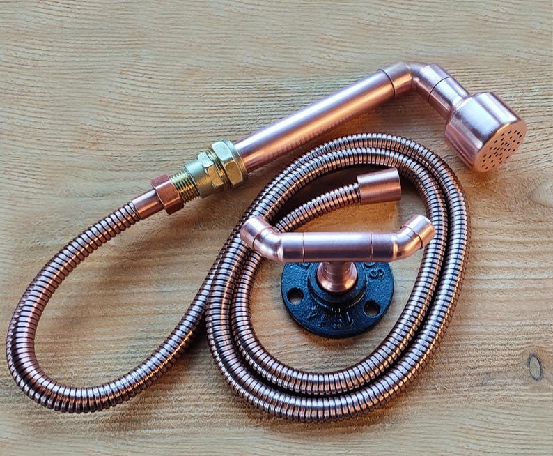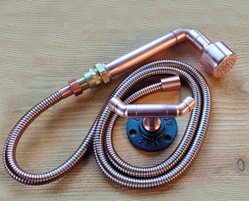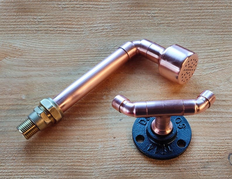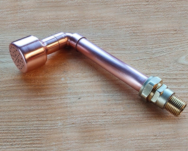 The unlacquered sprayers are made from copper and brass and have a standard 1/2 inch connection. They measure about 21cm in length.