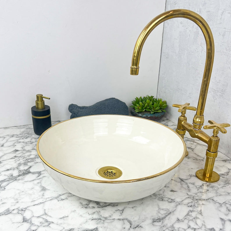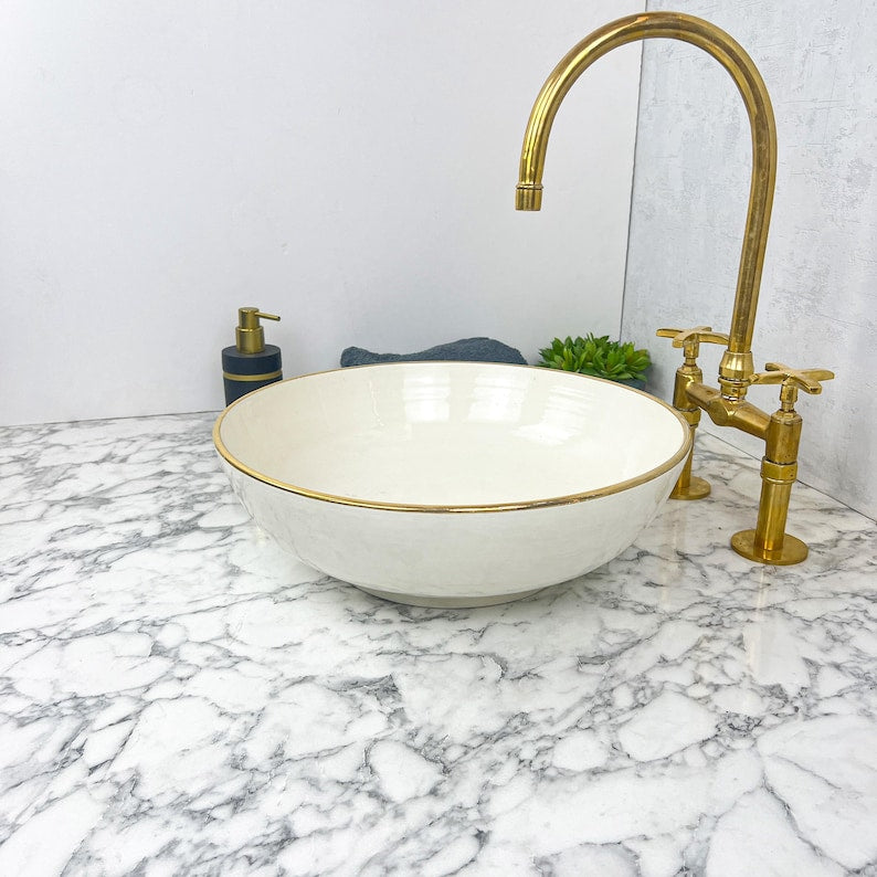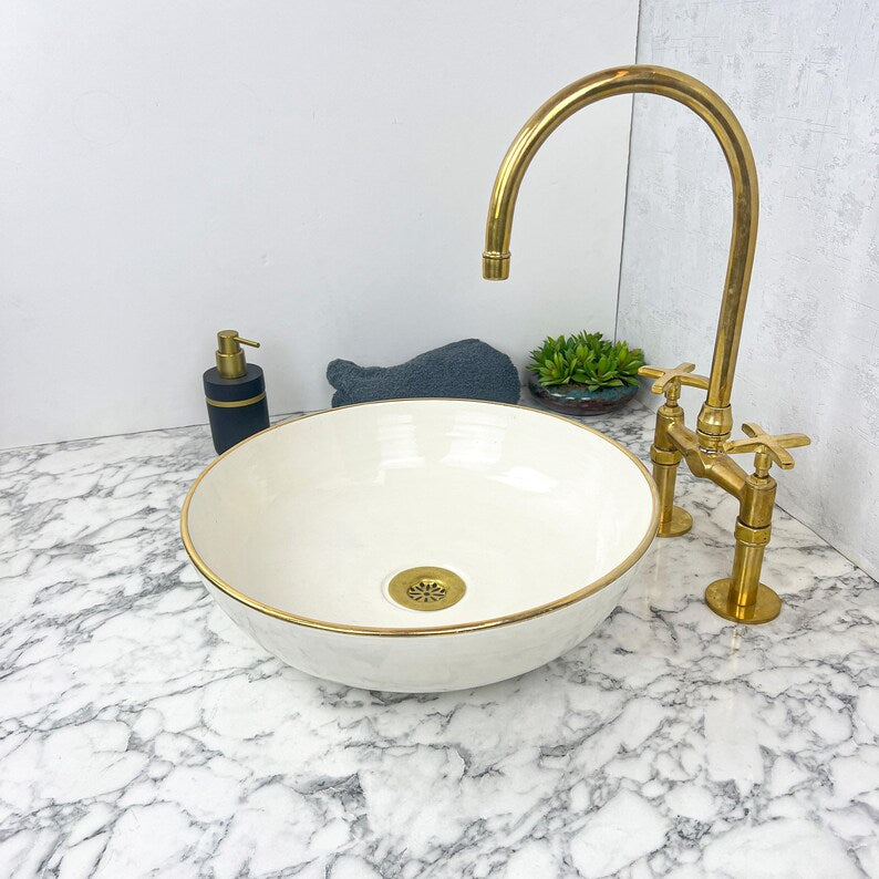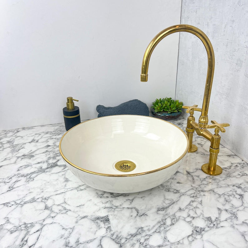 Elevate your Bathroom decor with our 14K Gold Rim Ceramic vessel sink