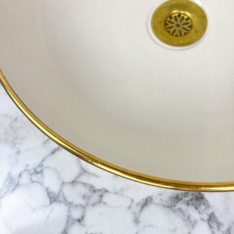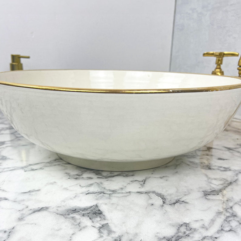 Product Name: Handmade farmhouse Art basin with 14K Gold rim
