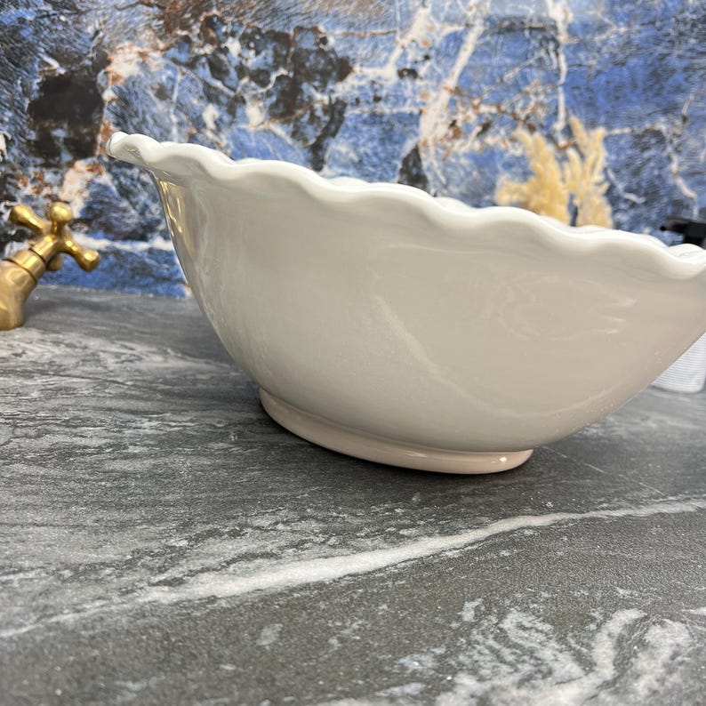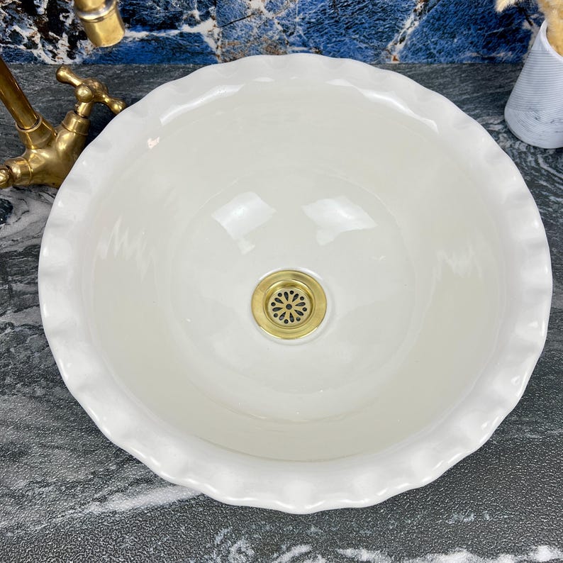 Round Ceramic Washbasin with Wave Rim - Ceramic Bathroom Sink Vanity Countertop - Handmade Porcelain Vessel Sink - Moroccan Basin Sink