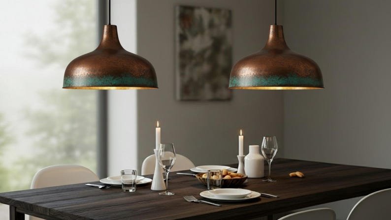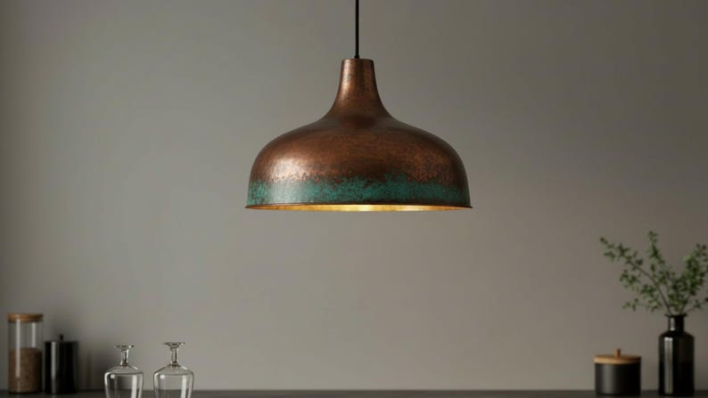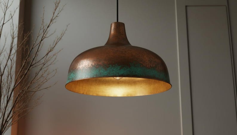 Rustic Copper Pendant – Aged Patina Dome Ceiling Light