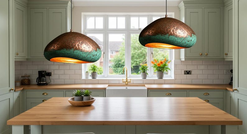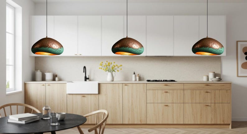 Handmade Copper Dome Lamp with Green Patina – Rustic Artisan Lighting