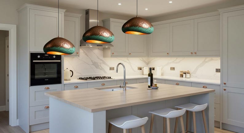 Rustic Copper Pendant Light Fixture, Copper Oxidized Island Kitchen Lighting , Copper Ceiling Dome Pendant Lamp Lighting , Rustic chandelier