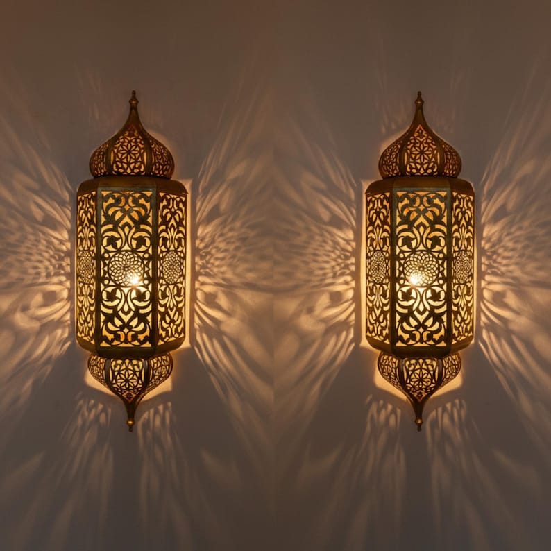 Set of 2 Elegant Moroccan Brass Wall Light – Handmade Sconce for Warm, Ambient Glow, Traditional Moroccan sconce, Moroccan sconce