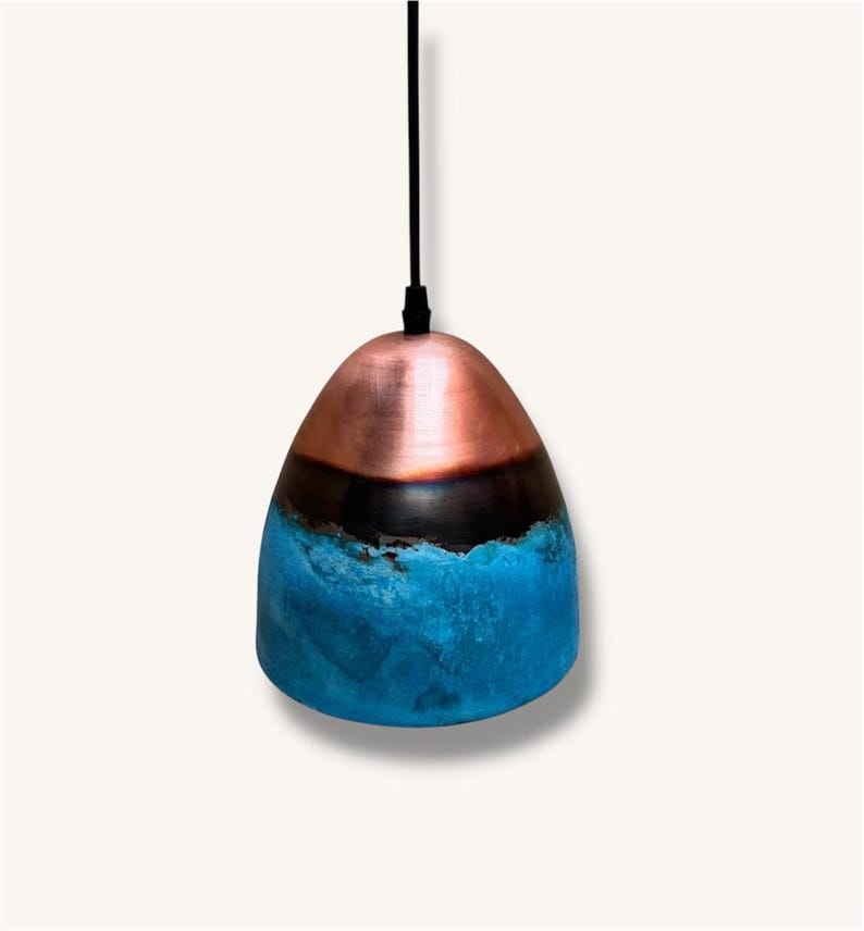 Set of 3 Oxidized Copper Dome Pendant Light, Handcrafted Green Patina Farmhouse Ceiling Fixture, Copper Pendant Light , Oxidized Copper Lamp