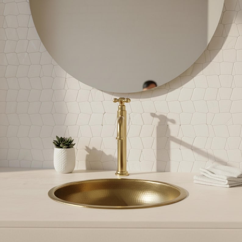 Give your bathroom a beautiful edge with an antique brass bathroom faucet. Featuring a cross handle with a lovely patina that looked and felt less new and went perfectly with our painted cupboards and traditional Belfast, marble, and copper sinks.