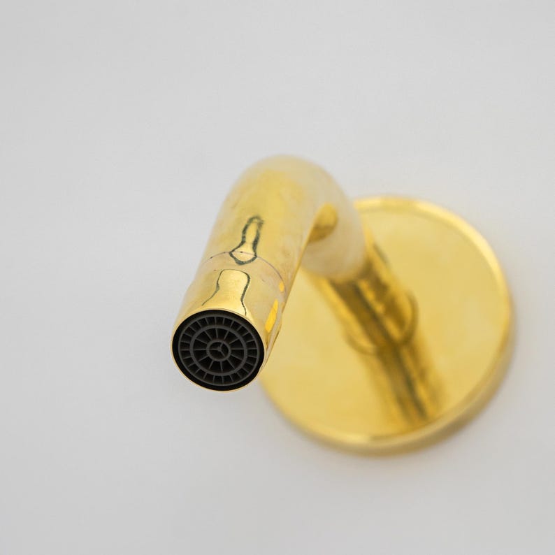 - Unlacquered Brass Finish, develops patina over time. This is a natural aging process. Faucet is delivered with a shiny look, then will start to patina with time.