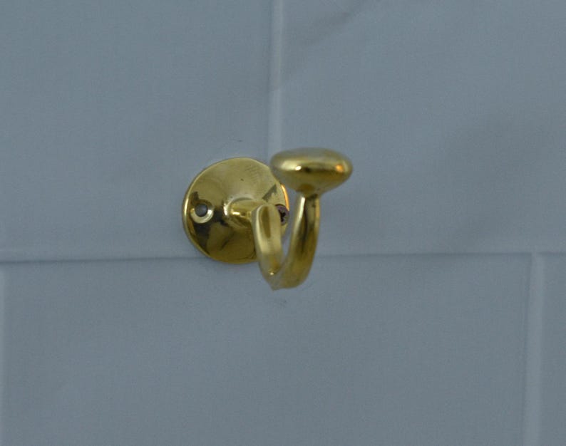 Solid Brass Hook, Unlacquered Brass Hooks, Vintage Antique Brass Wall Hook