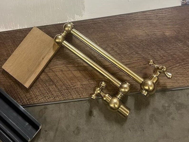 Solid Brass Pot Filler Kitchen Faucet: Deck Mount, Flat Handles