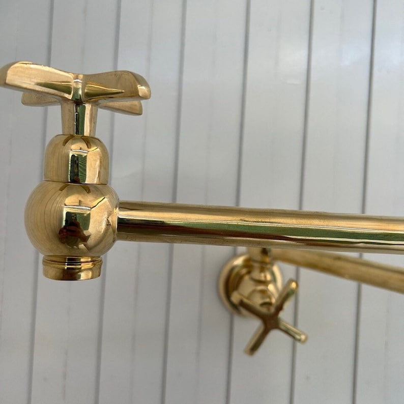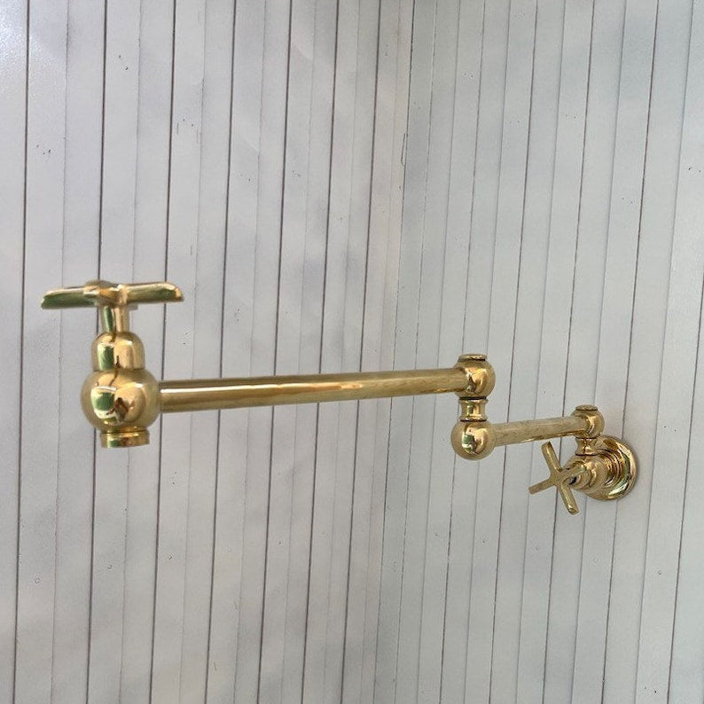 Brass Pot Filler Deck Mount Kitchen Faucet, Solid Brass Cold and Hot water Faucet