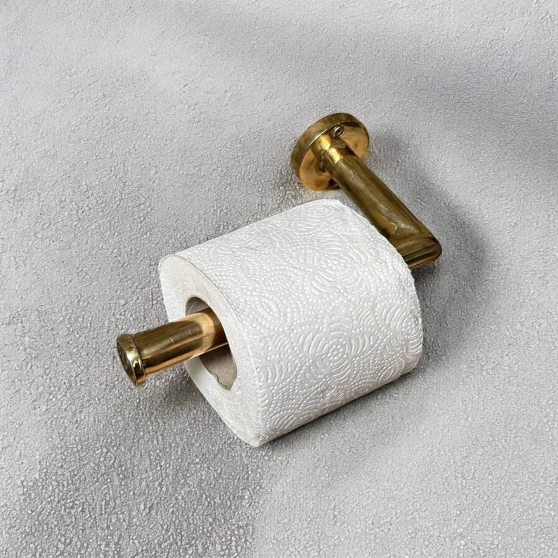 Bring understated luxury to your bathroom with this handcrafted, wall-mounted toilet paper holder made from solid unlacquered brass. The living finish develops a natural patina over time, giving each piece a warm, one-of-a-kind character.