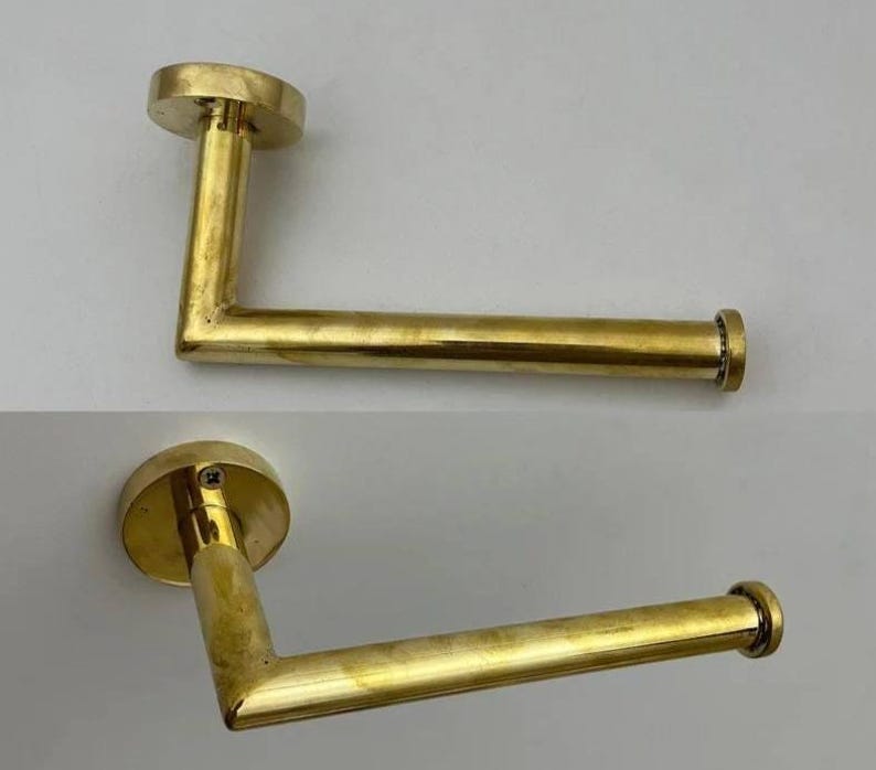 Solid Brass Toilet Paper Holder Wall Mount | Unlacquered Bathroom Hardware | Modern Farmhouse Decor | TP Holder Brass Fixture