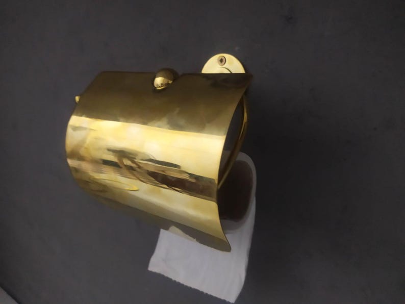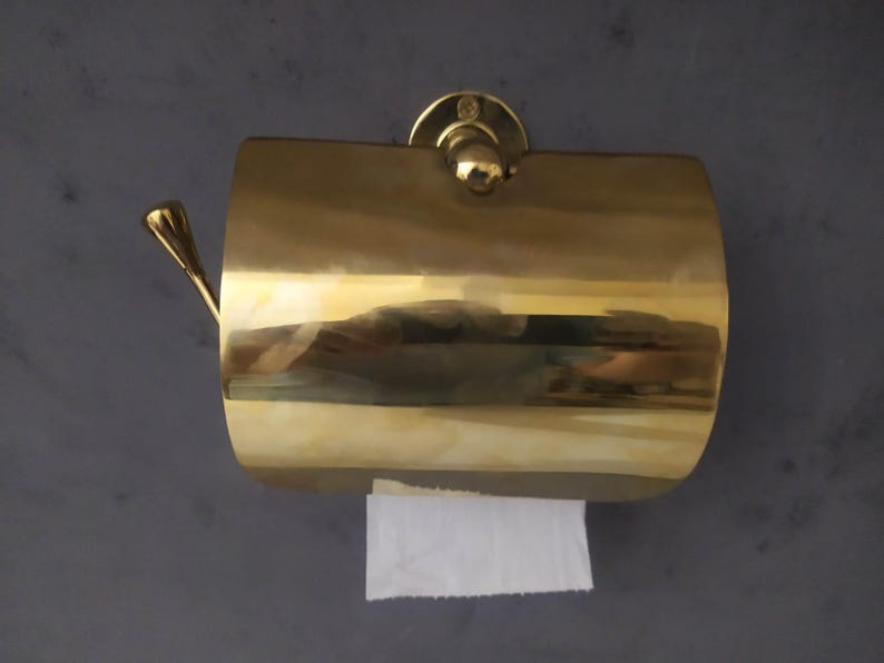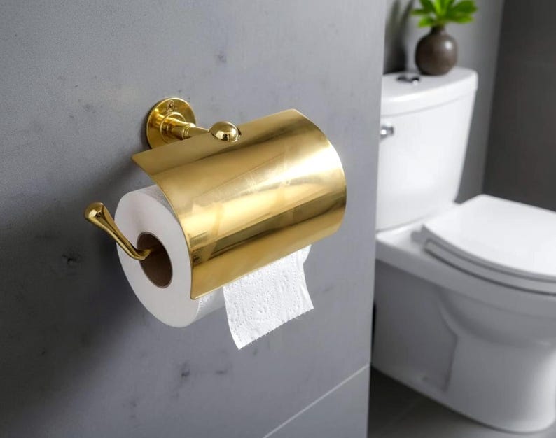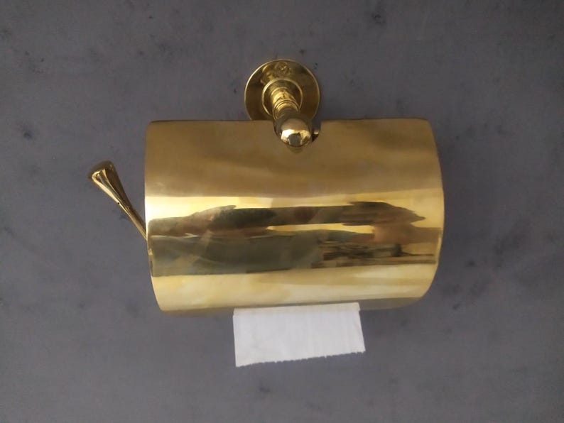 Authentic, reliable and transparent - your satisfaction is our absolute priority. Our team is always available to support you. Upgrade your bathroom with this elegant solid brass toilet paper holder. Featuring a polished gold finish and a protective cover, this wall-mounted tissue holder combines durability with timeless style. The unlacquered brass will naturally develop a warm patina over time, adding unique character to your bathroom décor. Perfect for luxury interiors and classic designs.