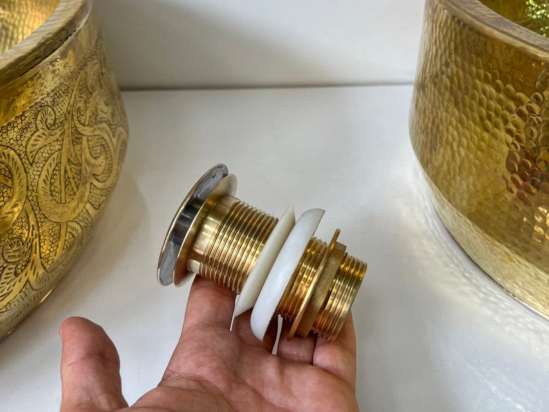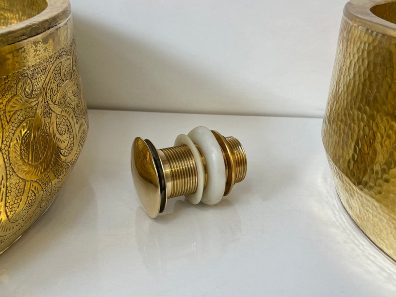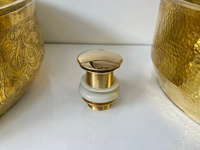 The Push Up Buttons are made of Solid Brass. With the handcraft touch they will perfectly match your sink.
