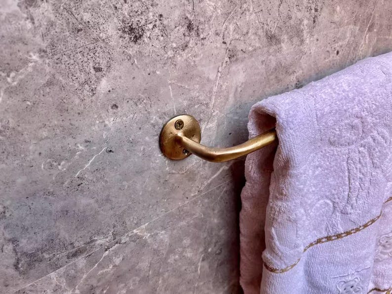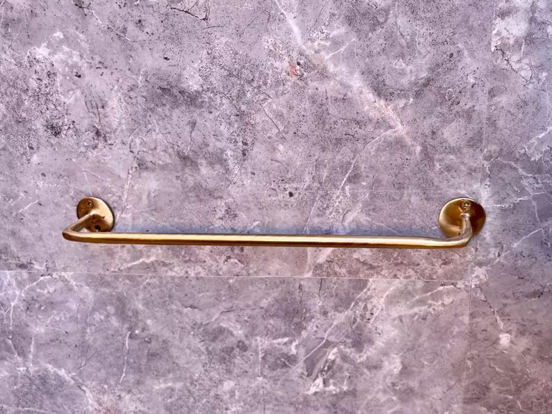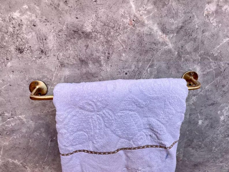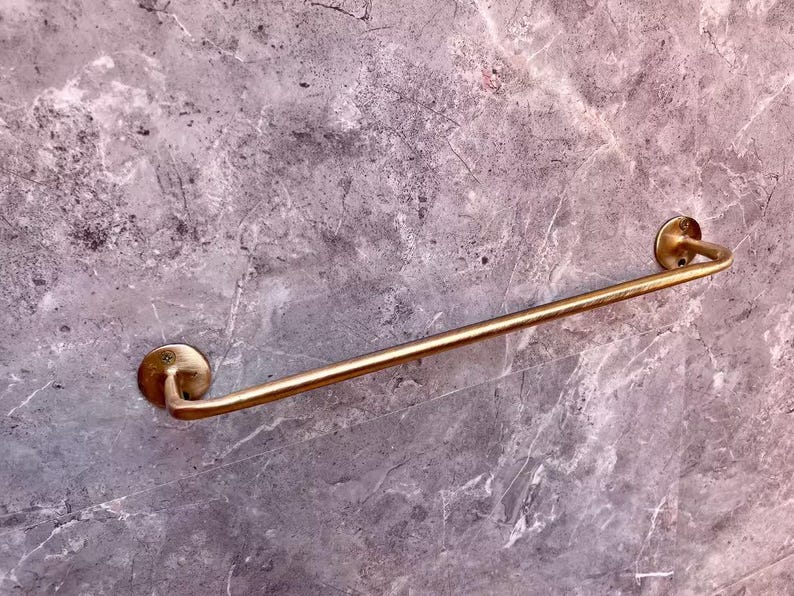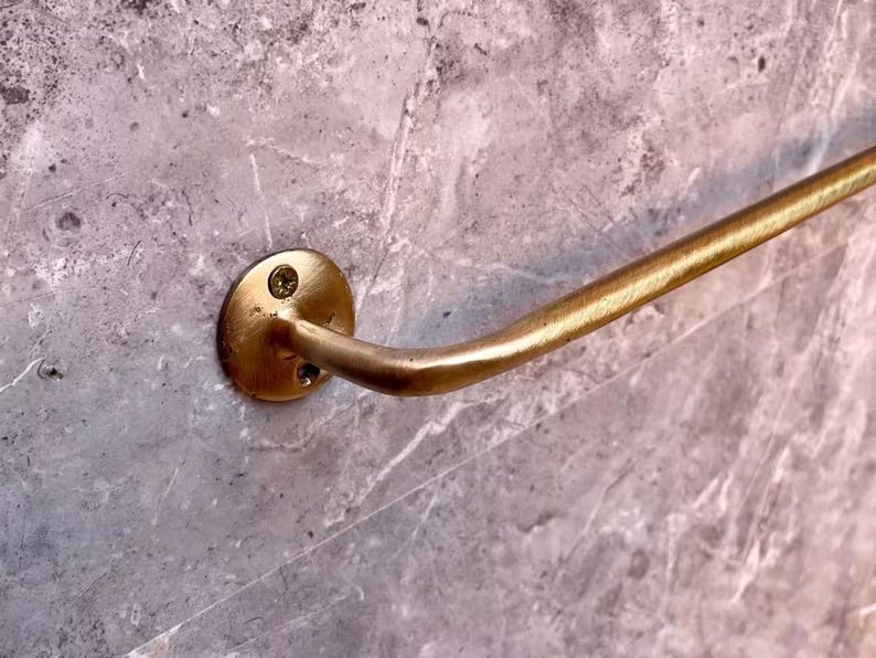 Solid Unlacquered Brass Towel Bar, Brass Wall Mounted Rod, Rustic Bathroom Decor, Handcrafted Brass Kitchen Towel Rail