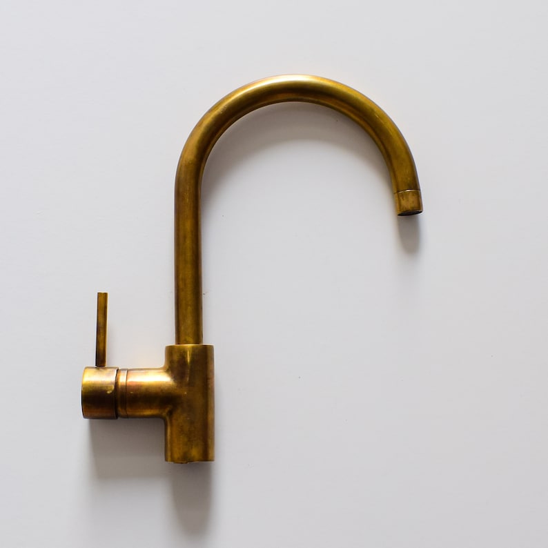 Swan Neck Unlacquered Brass faucet, Unlacquered Brass Bathroom Faucet, Island Faucet, Authentic Brass Sink Mixer Tap