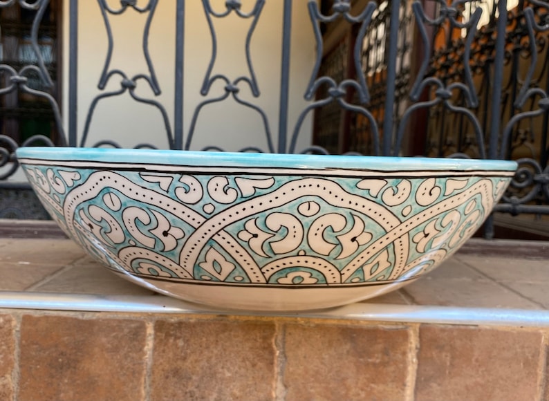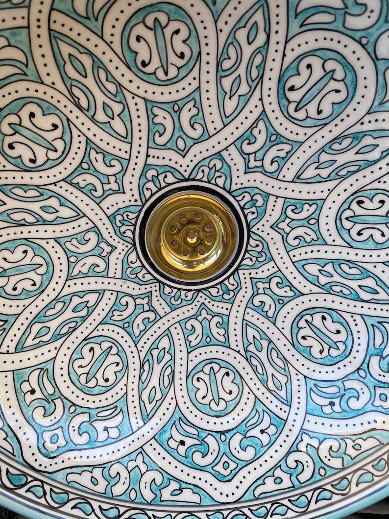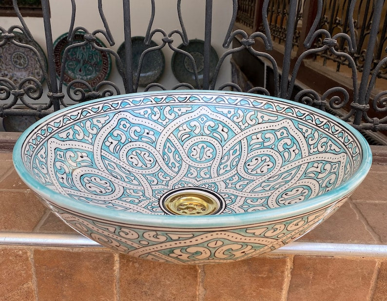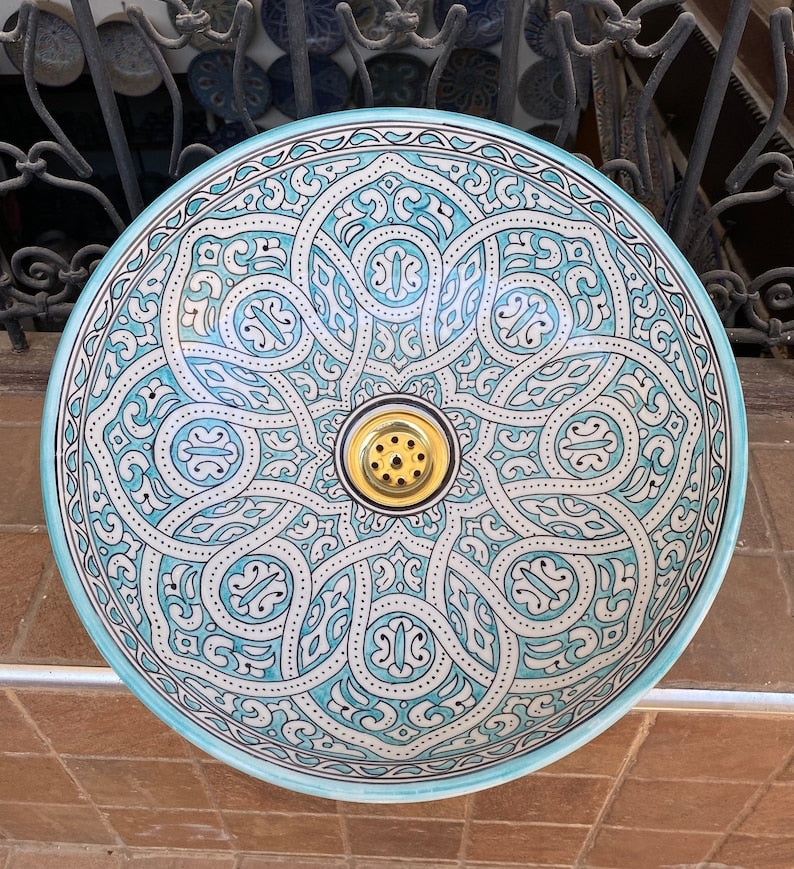 Turquoise sink/Handmade and hand-painted Moroccan ceramic sink. Moroccan washbasin handmade.