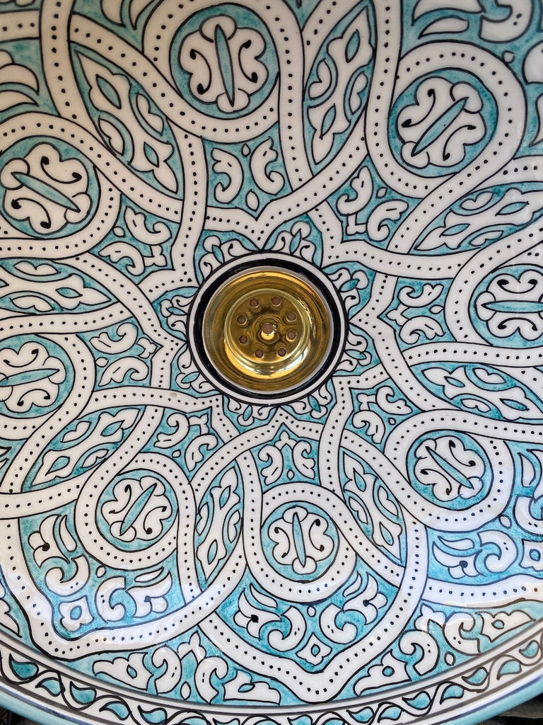 Turquoise wash basin/Ceramic sink from Fes. Handmade Moroccan sink. Ceramic sink.