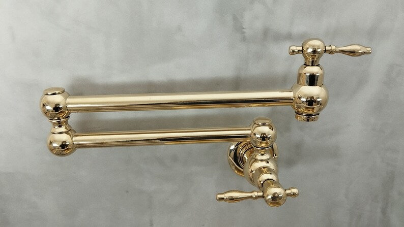Uncoated Brass Pot Filler Kitchen Faucet - Wall Mount