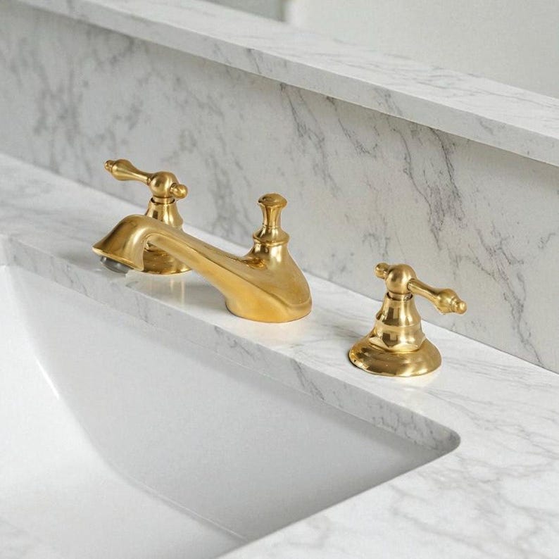 Unlacquered Brass Bathroom Faucet: Solid Brass, Widespread Mount