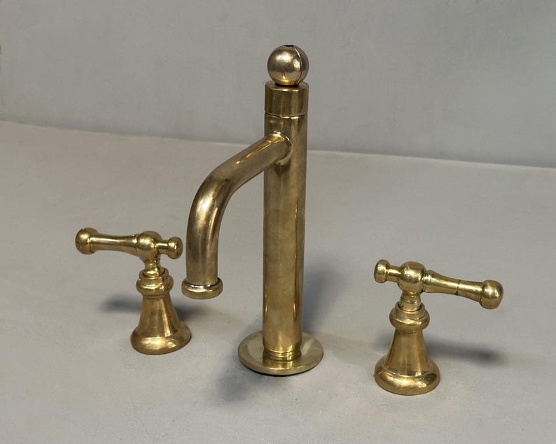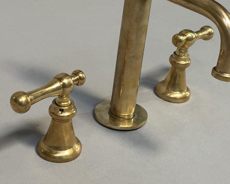 Unlacquered Brass Bathroom Faucet: Victorian Two Handle Wall Mount