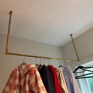 Unlacquered Brass Ceiling Clothes Rack, Laundry Drying Rack, Brass Laundry Rail, Clothes Hanging Bar for Laundry Room, DDP shipping