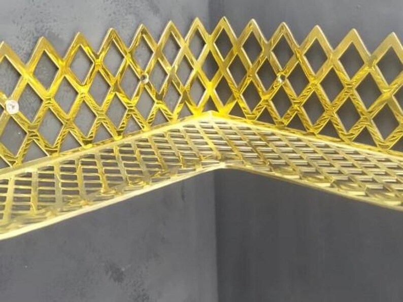 Solid brass shower shelf is the perfect glamorous vintage Moroccan touch to elevate your bathroom and powder room decor.
