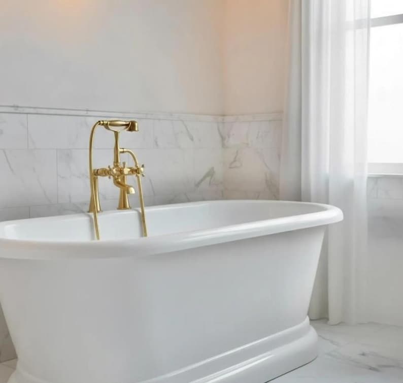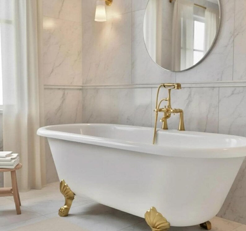 Enjoy timeless elegance with this deck-mounted bathtub faucet and hand shower, a true masterpiece that blends classic European luxury with modern craftsmanship.