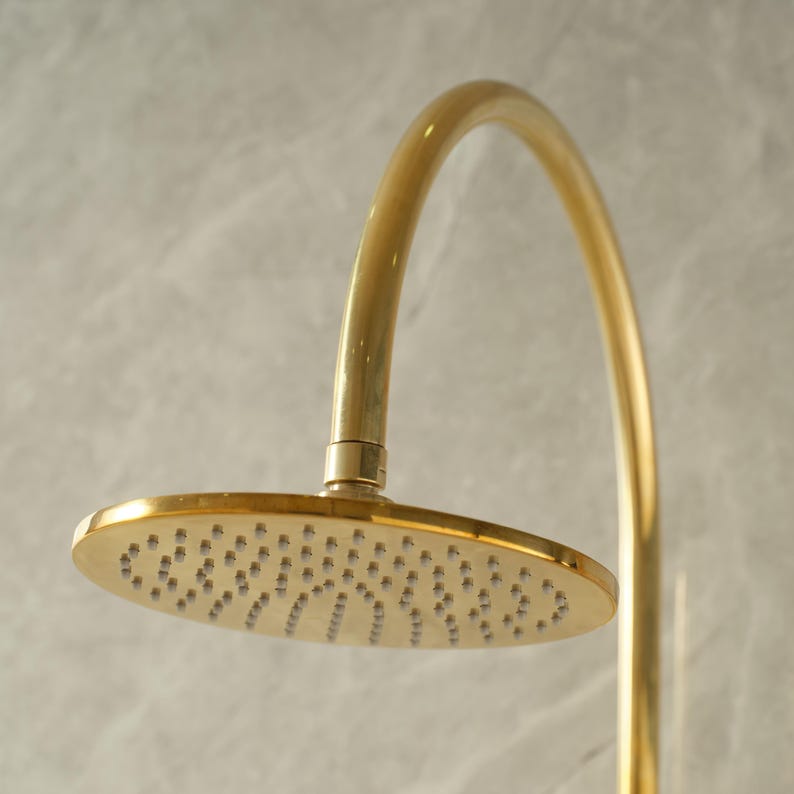 Unlacquered Brass Exposed Pipe Wall Mount Shower with Rainfall Shower Head, Shower System Full Set