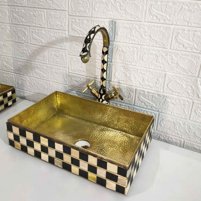 Unlacquered Brass Faucet & Vessel Sink, Bone And Resin Conception - bathroom Washbasin