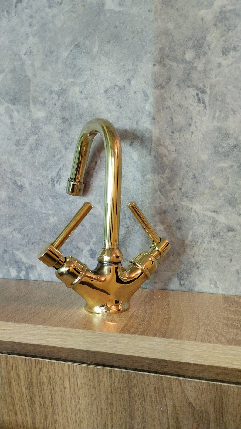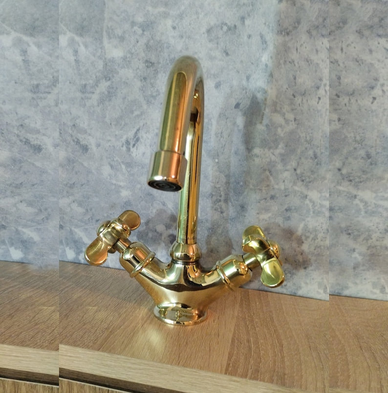 The Unlacquered Brass Bathroom Faucet is a high-quality, durable faucet made from solid brass material. It has a natural, unlacquered finish that will develop a warm patina over time, giving it a unique and elegant look. The faucet features a classic design and is ideal for traditional or vintage-style bathroom designs. It is easy to install and use, making it a practical and attractive addition to any bathroom.