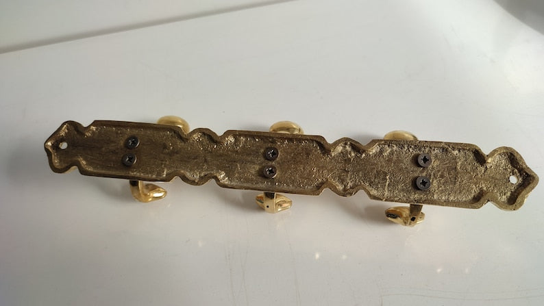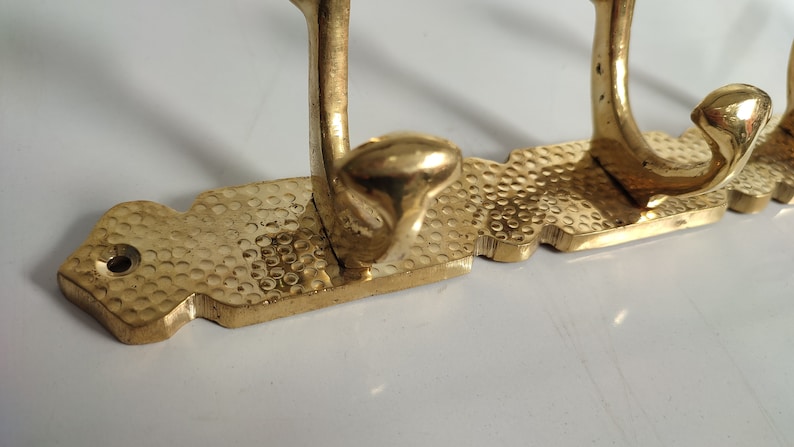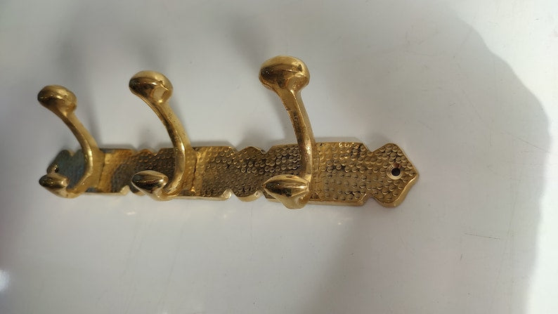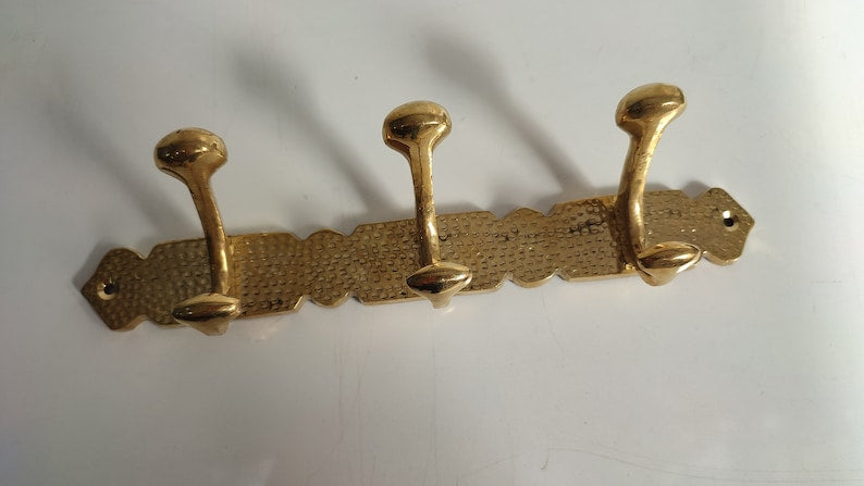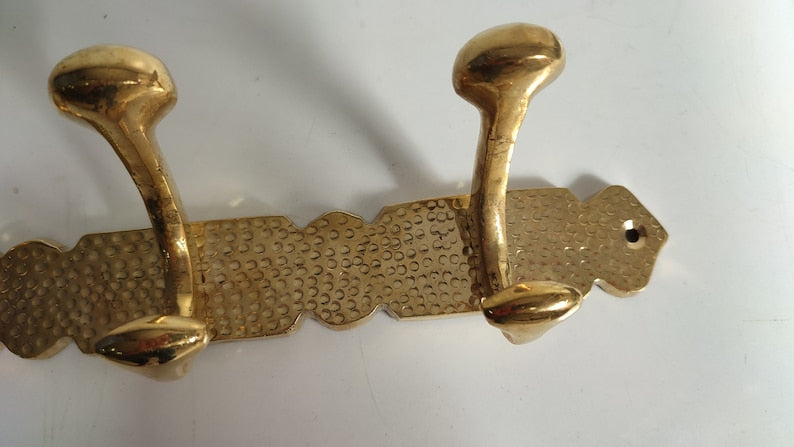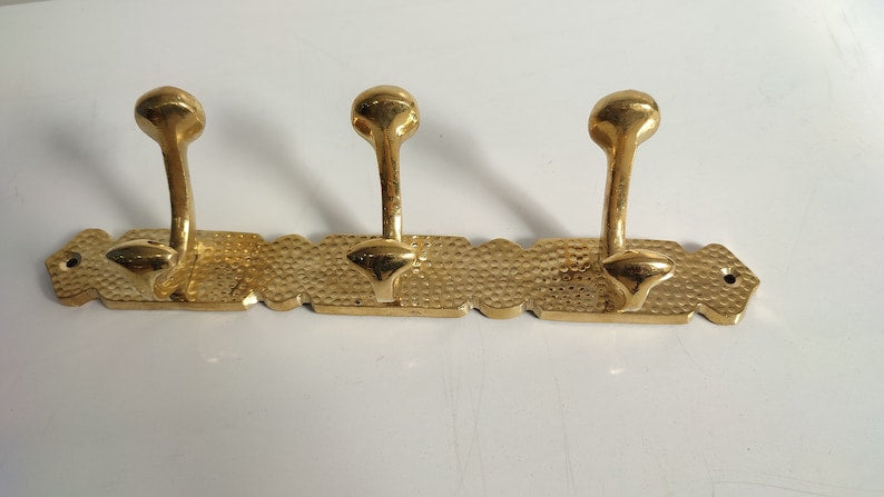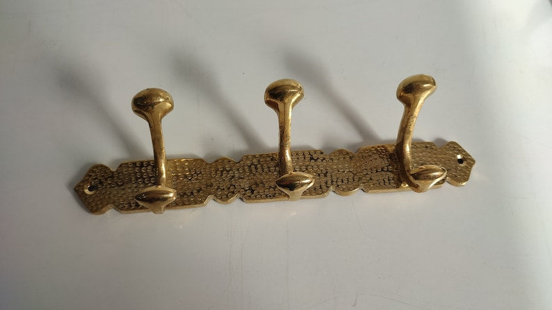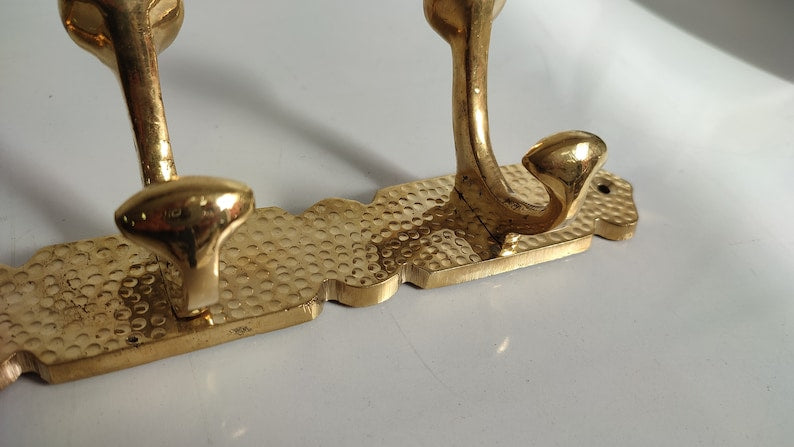 Unlacquered Brass Hammered Coat Rack, Handmade Wall Coat Hooks