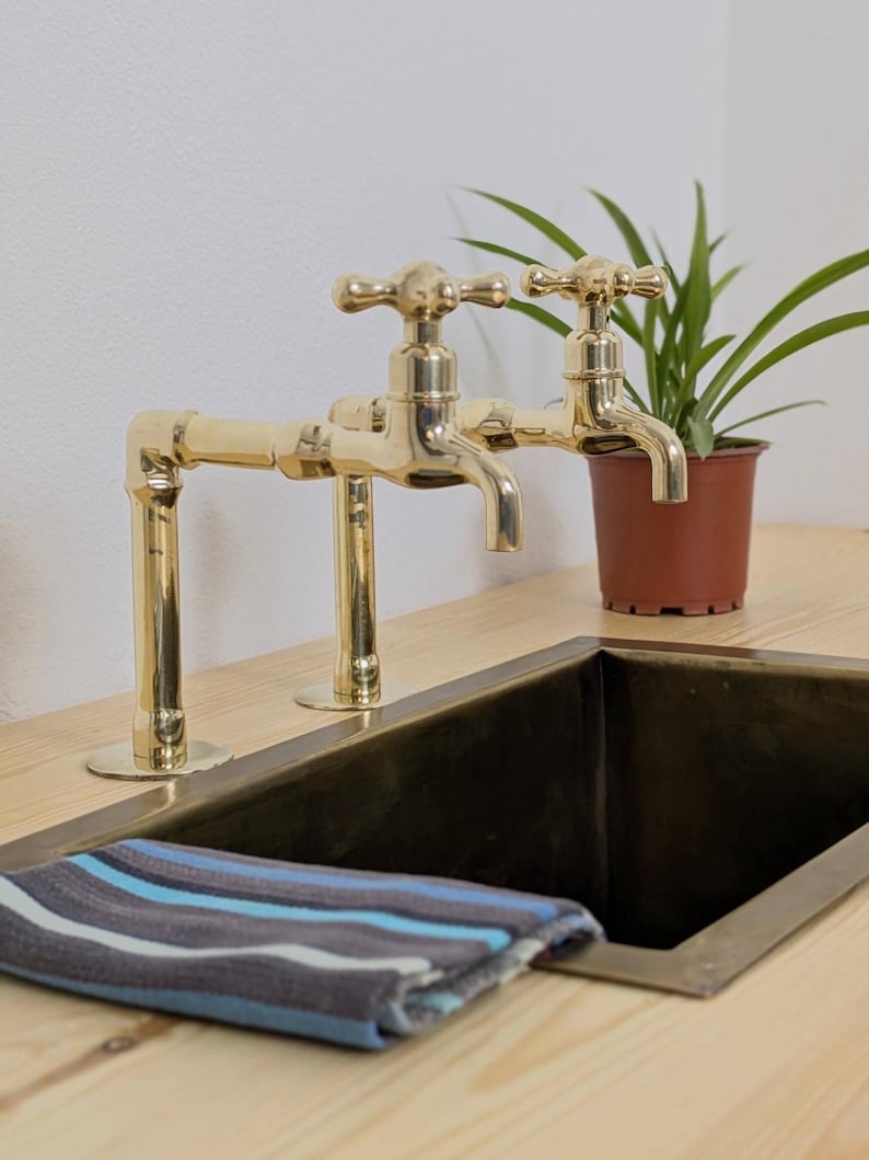 Unlacquered Brass kitchen and Bathroom Faucets, Single-Hole Taps Style.