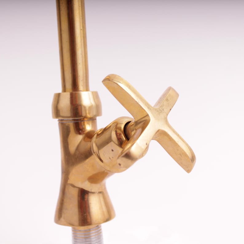 Unlacquered Brass Kitchen Faucet: Single-Lever Rotating Sink Tap