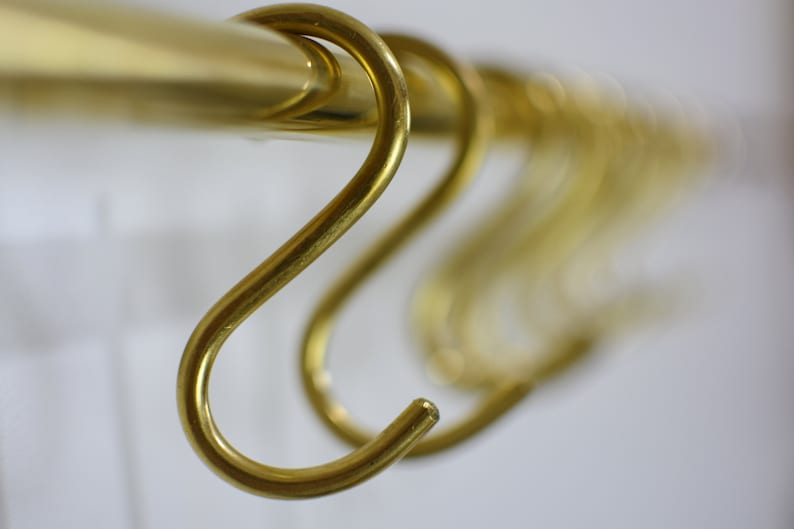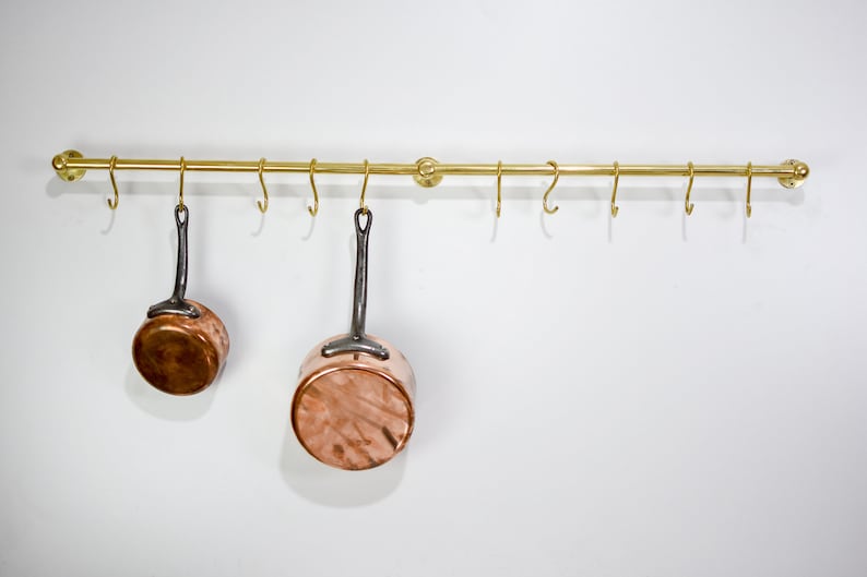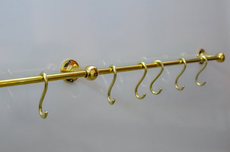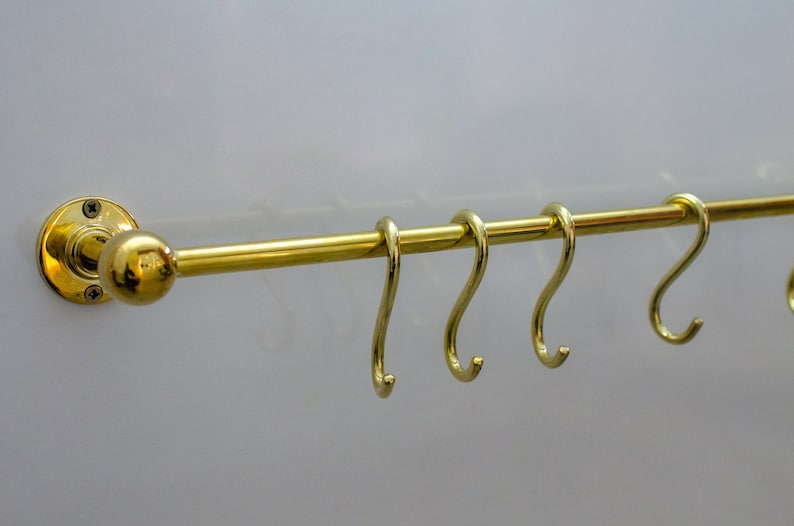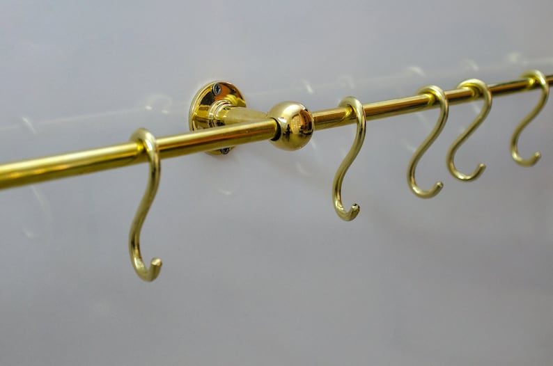 Unlacquered Brass Kitchen Rods, Pot Rail With S Hooks, Pan Rack organizer, Wall Mounted Brass Kitchen Rod with Hooks | Duty-Free