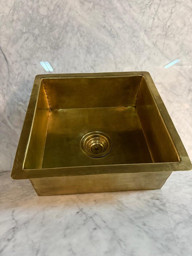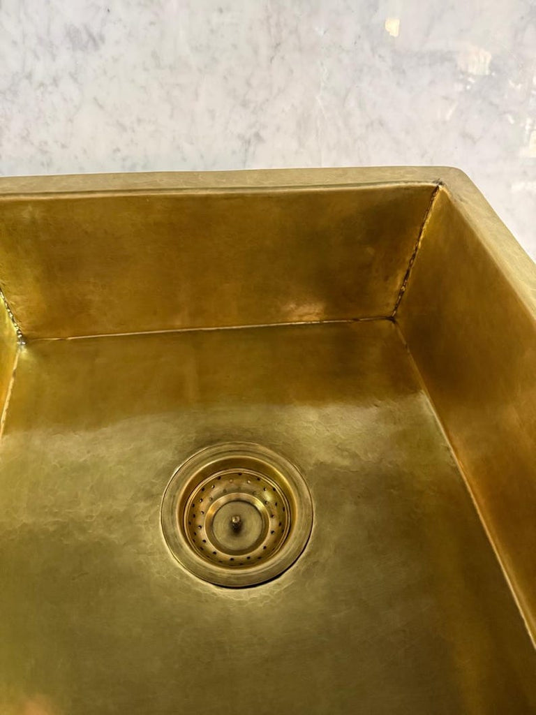 Unlacquered Brass Kitchen Sink – Handmade Polished Basin with Smooth Finish (Drop-In or Undermount)