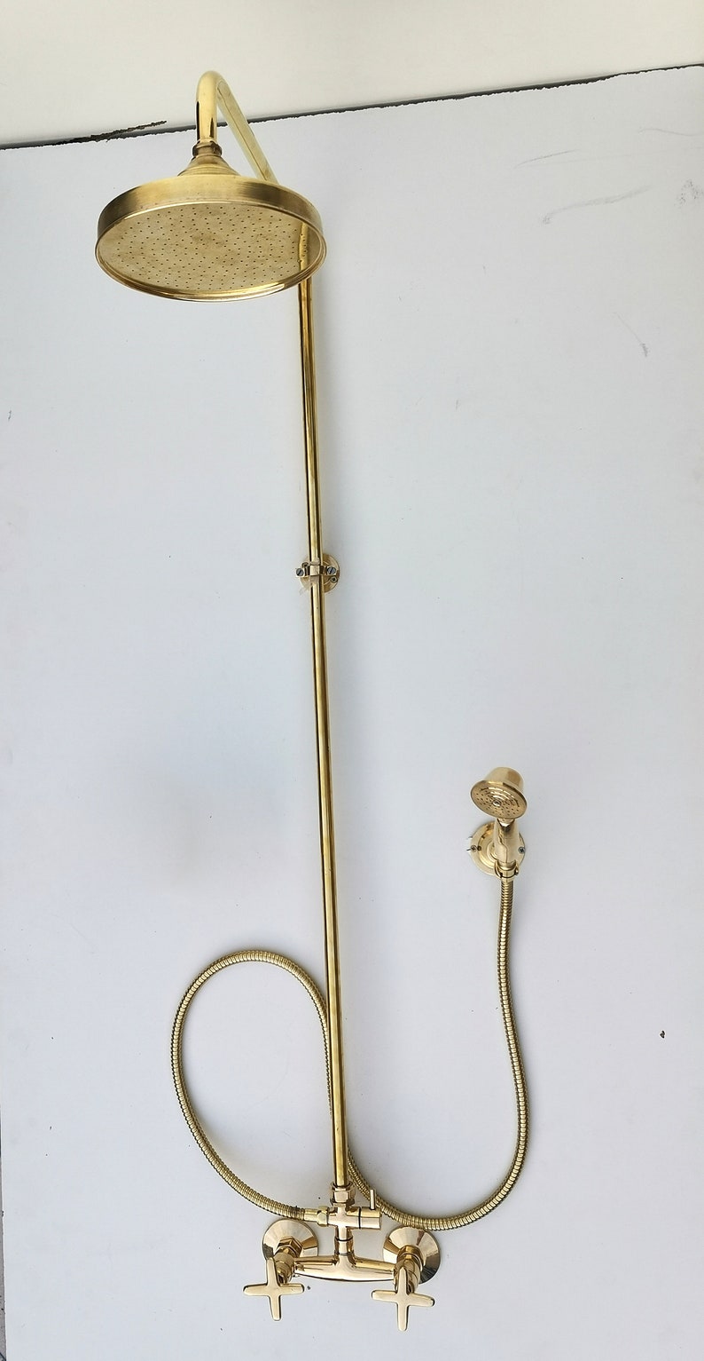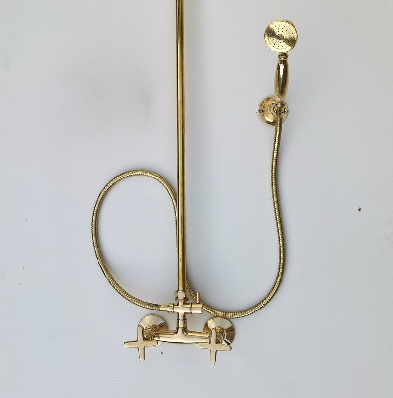 This brass shower system not only serves as a functional bathing fixture but doubles as a statement piece, adding character to your bathroom. Whether you're building a new space or redesigning your existing one, its durability and unique vintage aesthetic will stand the test of time.