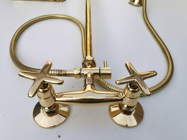 Transform your bathroom into an elegant oasis with this Handmade Brass Shower System featuring a timeless design. Perfect for those seeking an authentic vintage aesthetic or a Moroccan-inspired ambiance, this shower system is crafted from high-quality solid brass for enduring durability and a luxurious finish.
