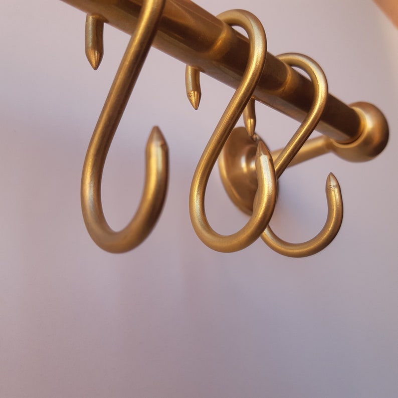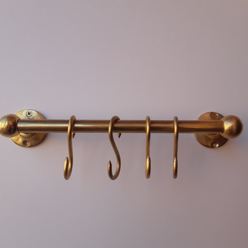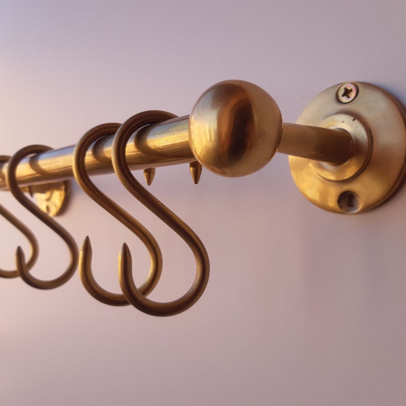 Transform your kitchen with our Unlacquered Brass Pot Rack, a stylish and functional accessory perfect for organizing your pots, pans, and kitchen utensils. Crafted from solid unlacquered brass, this brass kitchen rail adds a durable, elegant touch to any kitchen style, from modern rustic racks to farmhouse kitchen decor. Each piece is handmade, ensuring high-quality craftsmanship and a unique design that enhances your kitchen’s look.