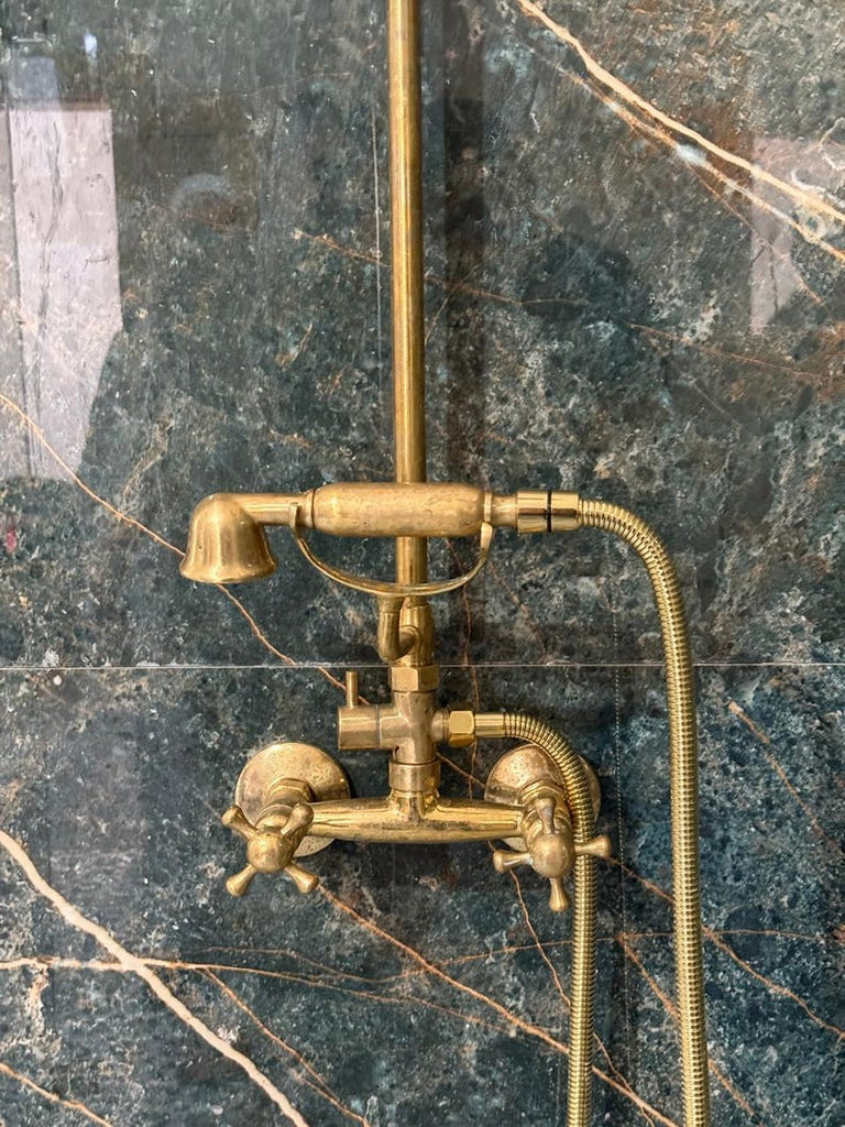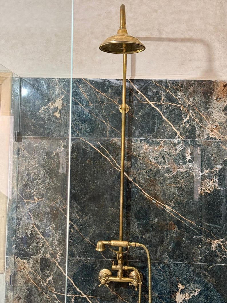 Unlacquered Brass Rain Shower System: Vintage Handheld Shower