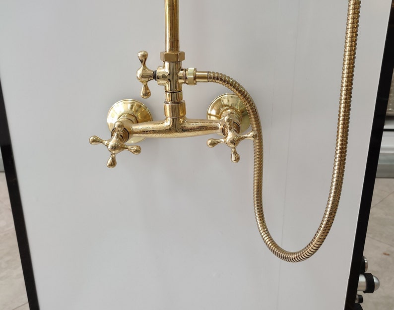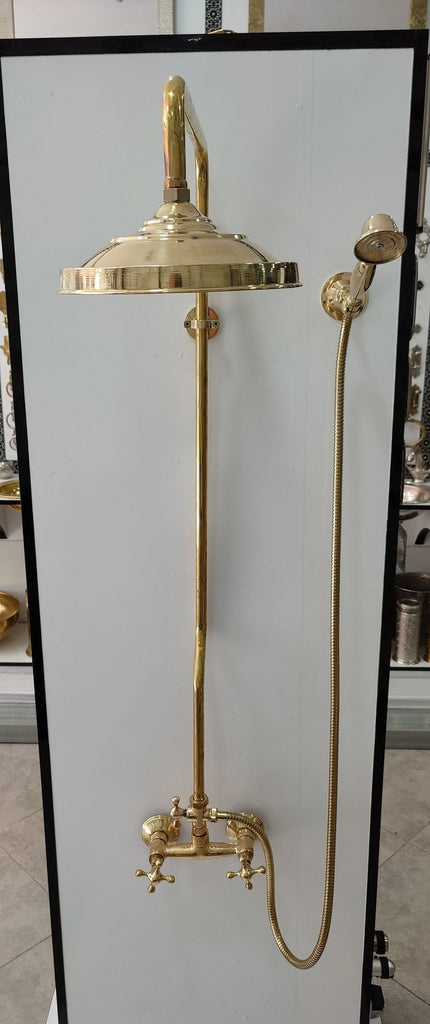 This shower system is made of heavy-duty solid brass, handcrafted by professional Moroccan artisans in the field of brass industry, in the color of brass, bronze and copper red And Silver